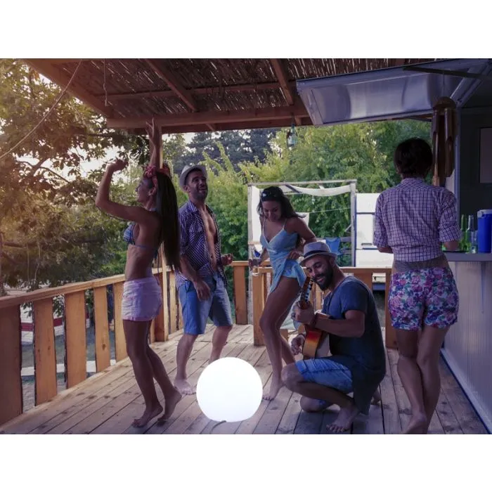 Lichtbol witte bol lamp Sphere geeft prachtig diffuus en sfeervolle verlichting en wordt vaak gebruikt als set met de andere verschillende afmetingen lichtbollen en onze lichtkubus. Door de floating-smart-tech afwerking kun je de afmetingen ø20cm, ø30cm en ø40cm tevens op het water gebruiken zonder dat je kabels nodig hebt. Dankzij de lithiumbatterij gaat de werking tot meer dan 6 uur mee. U kunt ook genieten van een breed scala aan kleuren dankzij het RGB LED-systeem. Het is perfect bestand tegen zowel regen als extreme temperaturen. Kortom, onze lichtspeaker is tevens een zitmeubel, als tafel te gebruiken, een speaker, een tuindecoratie en geeft sfeervolle verlichting. Waarom kiezen voor onze tuinverlichting: Wij recyclen. Onze gerecycleerde plastic producten zijn ontworpen om afval te verminderen en verantwoorde consumptie te bevorderen. Wij hergebruiken. Elke lamp uit ons assortiment helpen we om een tweede leven te geven aan plastic dat is verzameld uit zeeën en oceanen. Wij verminderen. Al onze lampen zijn 100% recyclebaar en we werken elke dag aan het verbeteren van onze processen om het milieu te beschermen en te verzorgen. Wij innoveren. Veel van onze gerecyclede tuinverlichtingen werken met zonne-energie om het gebruik van kabels en energieverbruik te verminderen. Alle deze producten zijn gemaakt van polyethyleen, waardoor ze licht zijn en zeer goed bestand tegen extreme temperaturen. Ze zijn ook beschermd tegen UV-straling, waardoor de levensduur van het product buitengewoon lang is. Technische specificaties: PERFORMANCE AND AUTONOMY - Type: Smarttech 2.0 Floating - Acces: Screwed - Connection: DC JACK 5,5 - Charging method: AD/DC charger + Solar charging - Separated solar panel: No - Ilumination technology: High Efficiency RGB + W smd LED - Battery: 1x2000mAh Litium (included) - Battery life by direct charging: 12 - 36 hours - Battery life by Solar charging: 2 to 6 hours - Solar panel power: 0,5W - Number of LEDS: 3RGB + 3W - Direct charging time: 4-6h -- Real Power: 1 W - Lighting power: 45 lumen primary colours - Iluminated area: 1 m2 @ 50 lux - Product life time: >25.000h - IP: 68 - Light temperature: RGB + W 6000K -- Angle: 360° - Battery life (cycles): 700 cycles - Swimming pool peripheral lighting: Yes - Restored lighting power: N/A - Ilumination style: Diffuse light (Decoration) - Charging method: AD/DC charger + Solar charging - Adapter input voltaje: 85 – 265 V AC - Adapter output voltaje: 5 VDC - Charging current: 1 A - Adapter cable length: 1,5 m - Integrated solar panel size: 55x66 cm - Dimmable: Yes - Finish Color: White - Material: ABS - Secondary material: PB - Remote control (IR): Yes - Twilight sensor: Yes - Motion sensor: No - Battery weight: 46,5grsMeer tonen