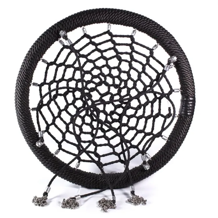 De nestschommel zwart Ø120cm is speciaal ontworpen voor openbare speelplaatsen en biedt kinderen een veilige en comfortabele schommelervaring. Deze hoogwaardige schommel is TÜV gekeurd volgens de EN 1176 veiligheidsvoorschriften en combineert veiligheid met duurzaamheid.